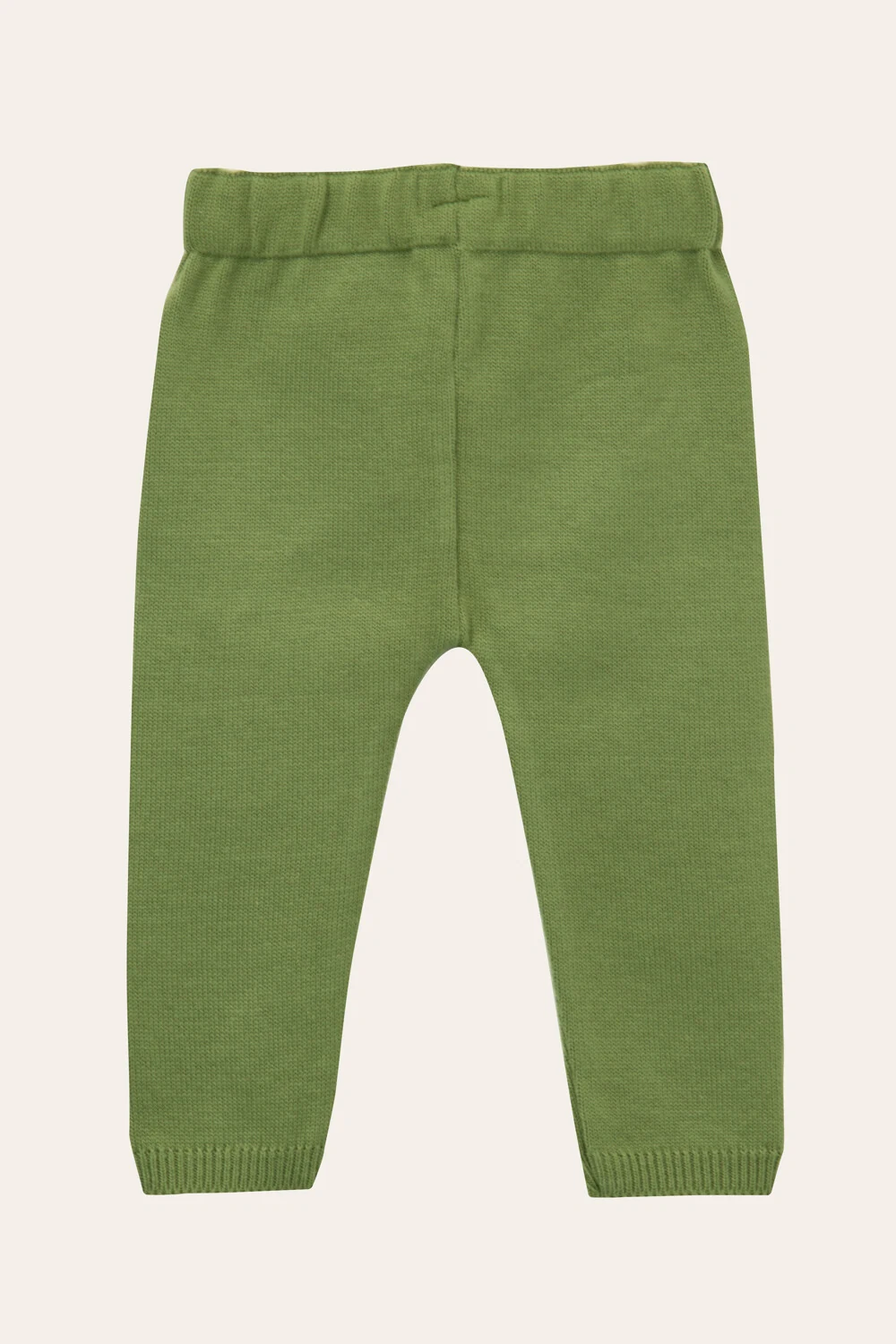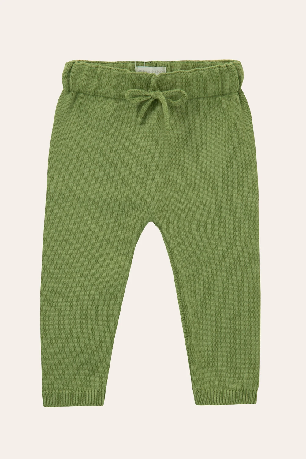 Calça de tricot com modelagem jogger soltinha e cós com elástico e cordão.