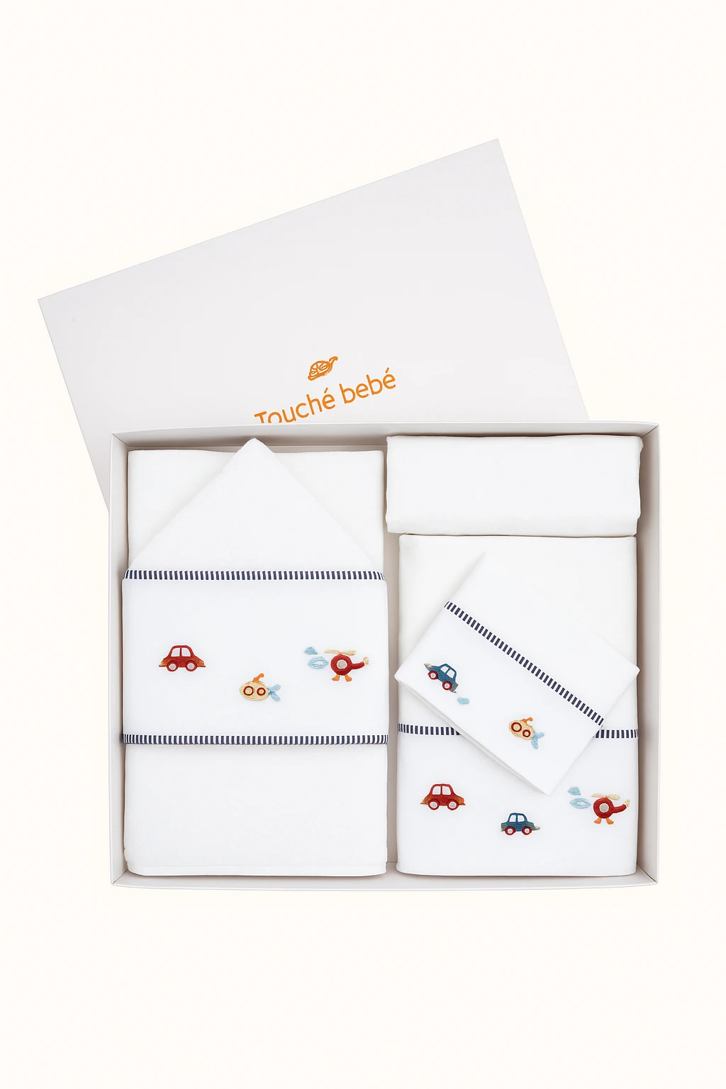 A toalha é feita do nosso famoso atoalhado felpudo e muito macio. Com capuz bordado ela acompanha uma toalha fralda grande, perfeita para usar quando seu recém-nascido chega em casa e tem a pele ainda muito delicada e sensível, é super absorvente, e tem um acabamento delicado de picueta - charme e cuidado por todo lado!