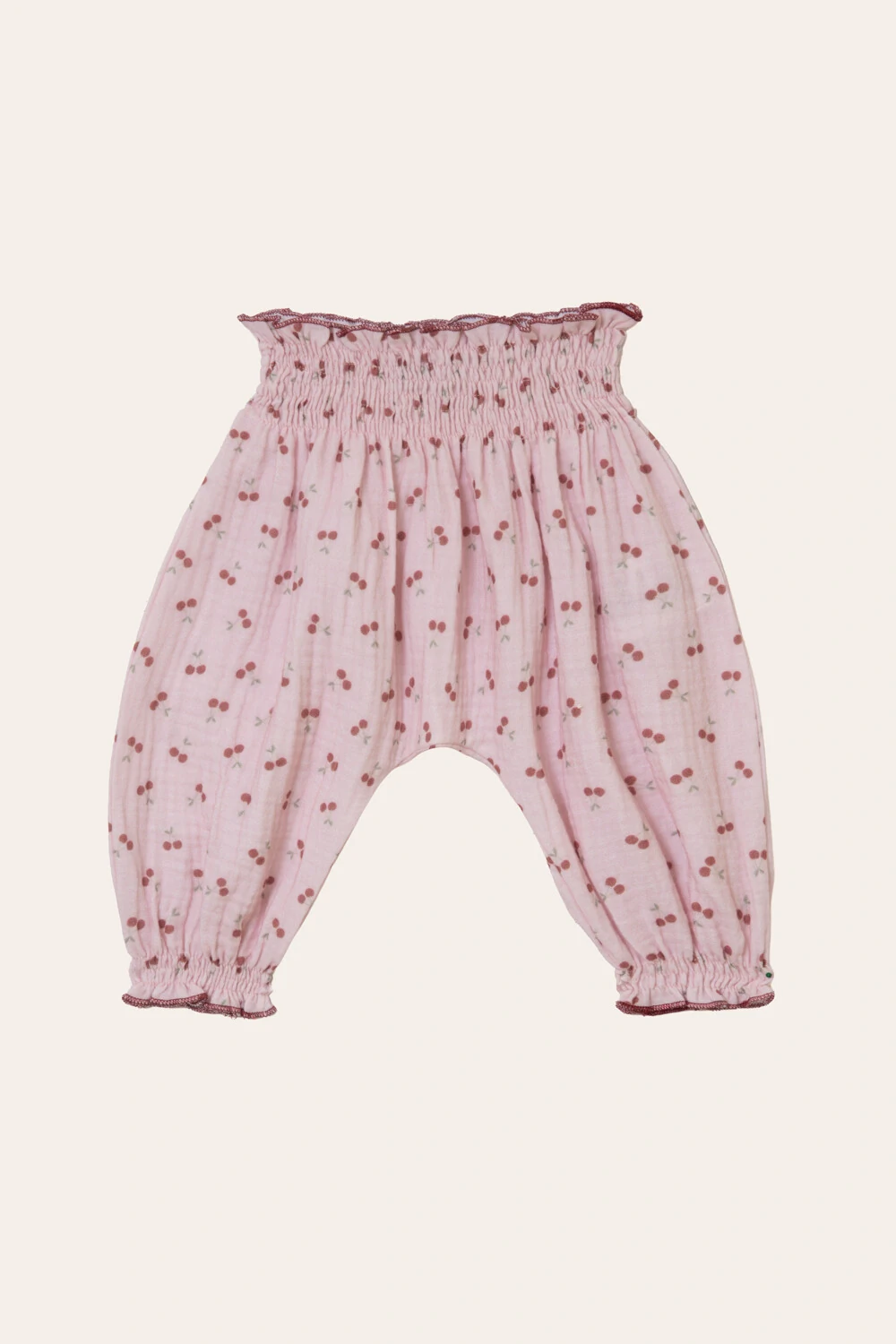 Calça bem levinha feita em gaze de algodão com estampa exclusiva, uma peça fresquinha e fofa. Com lástex na cintura e barras.