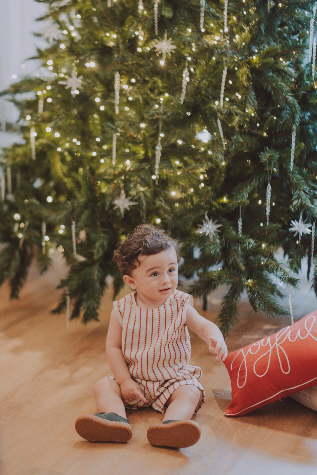 Jardineira de modelagem retinha em tecido maquinetado listrado lindo e sofisticado - aberturas de botões nos ombros e entrepernas facilitam o vestir e as trocas de fralda. Combine com bodies de gola para um look mais clássico e formal