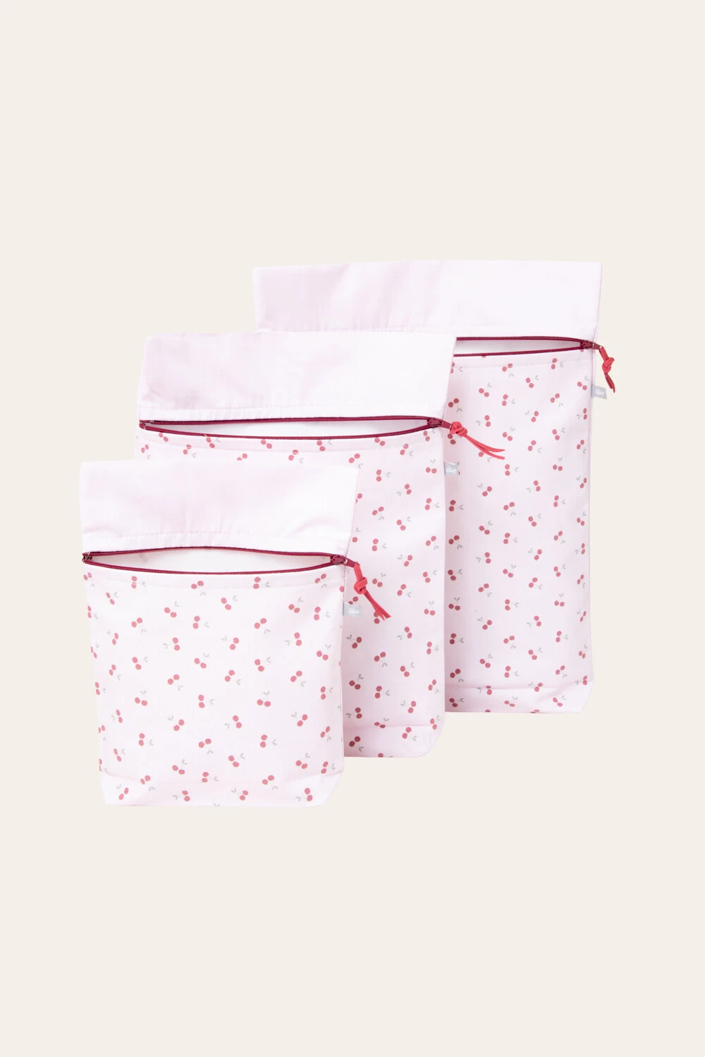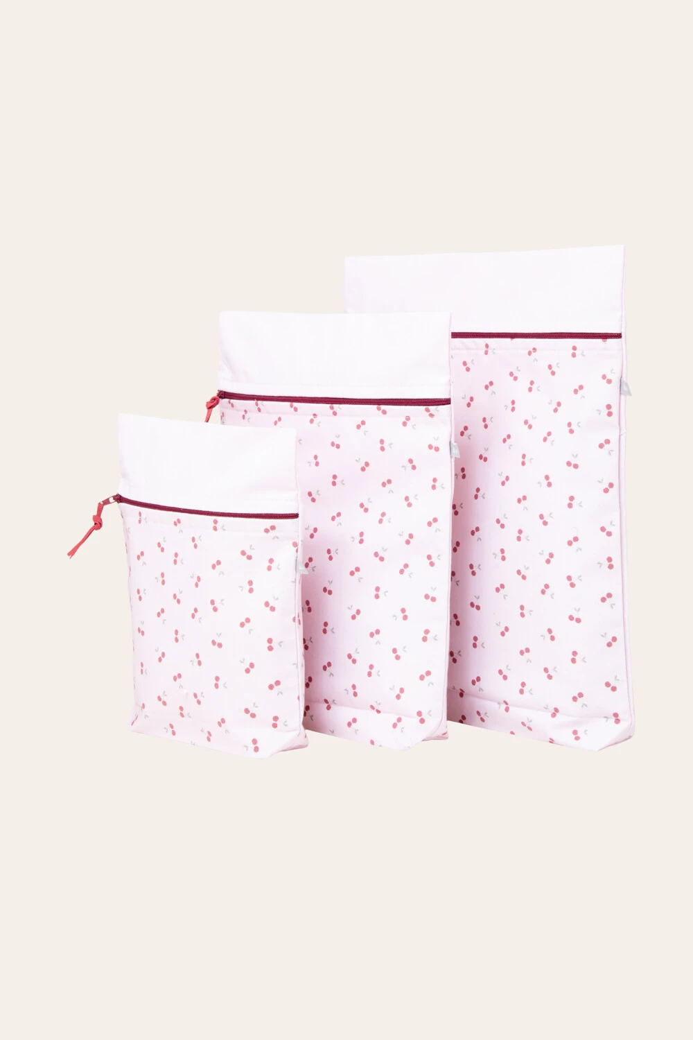Kit saquinho estampado em sarja, com zíper e interno impermeável, em três tamanhos é perfeito para guardar e organizar as coisas do seu bebê
