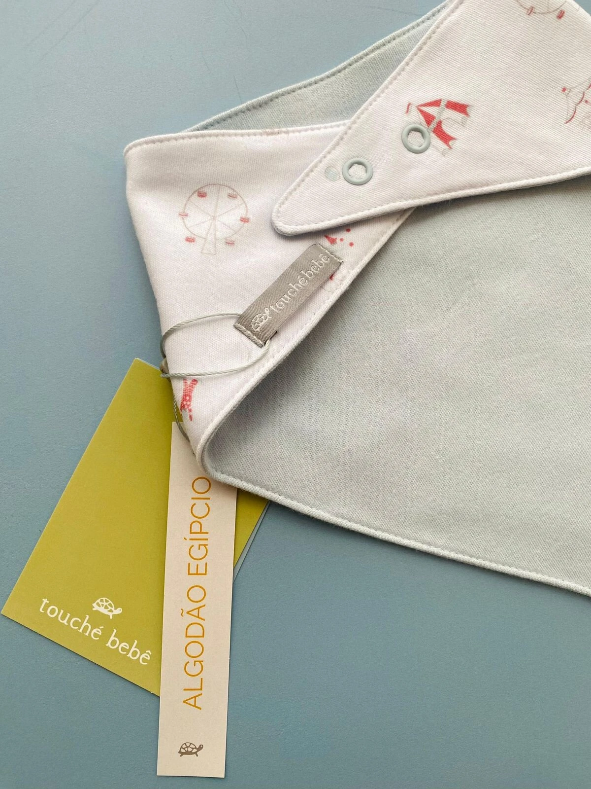 Babador de malha dupla face, um lado estampado e um lado liso, com interno de tecido impermeável. Perfeito para não molhar a roupinha do seu bebê.