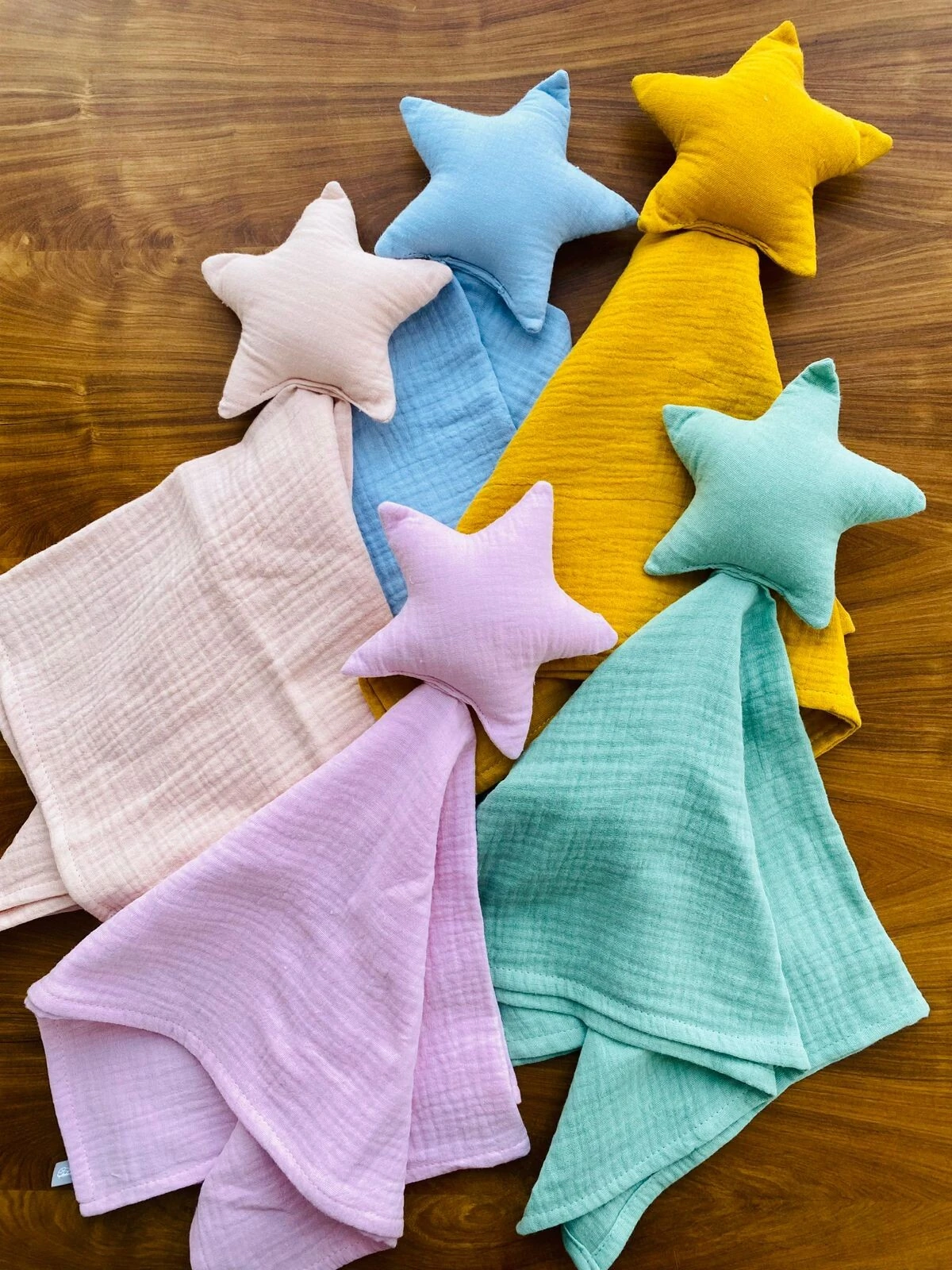 Todo bebê ama uma naninha, ainda mais em cores lindas e feita em gaze de algodão levinho e com uma estrela fofinha na ponta.
