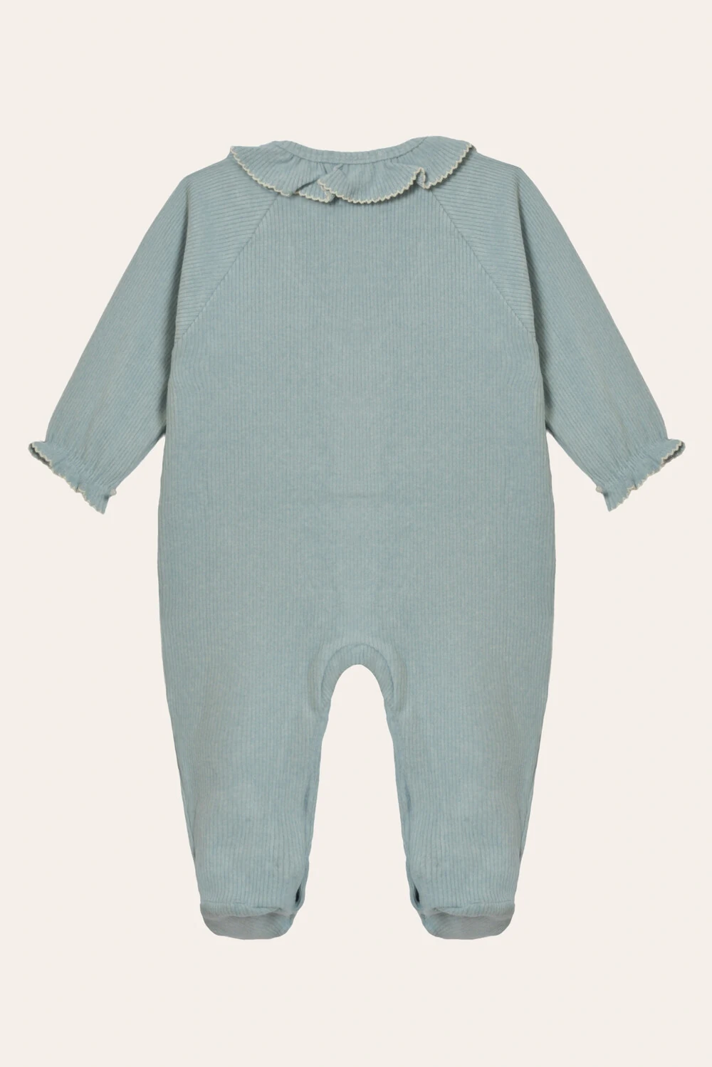 A nossa linha de canelados é um sucesso! Sabe aquelas peças que deixam seu bebê confortável e lindo? Pois é, as nossas peças de tecido canelado são assim. O macacão tem babadinho e é aberto na frente - fácil de vestir, cheio de detalhes, lindo! As peças são feitas no nosso Canelado, um mix de fibras de toque fresco e super maleável.