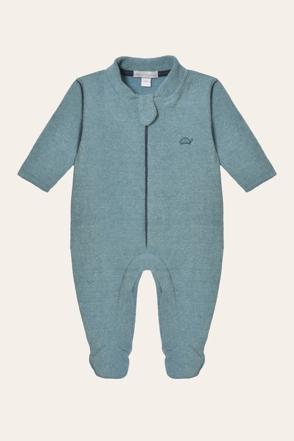 Macacão em tecido com interno felpudo, perfeito para seu bebê dormir quentinho com conforto. Abertura de zíper frontal e de botões de pressão no entrepernas - que facilitam as trocas nos dias frios sem expor o peito do bebê.