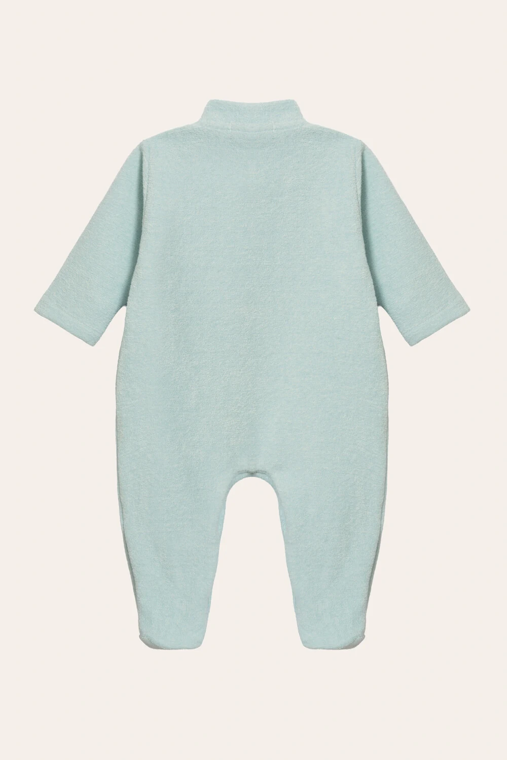 Macacão em tecido com interno felpudo, perfeito para seu bebê dormir quentinho com conforto. Abertura de zíper frontal e de botões de pressão no entrepernas - que facilitam as trocas nos dias frios sem expor o peito do bebê.