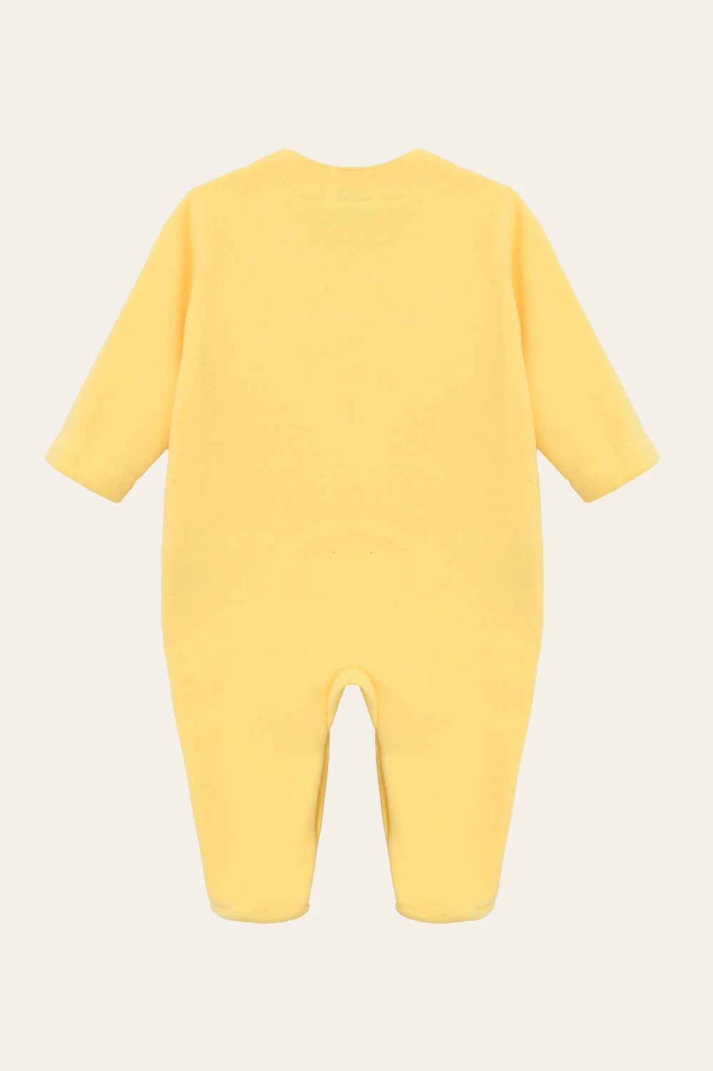 Macacão em soft com abertura lateral e aplique de patinho no centro. Fofo e prático para deixar seu bebê quentinho.