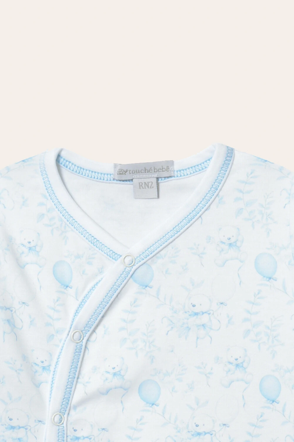 Macacão Abertura Lateral Urso Pima Azul Bebê