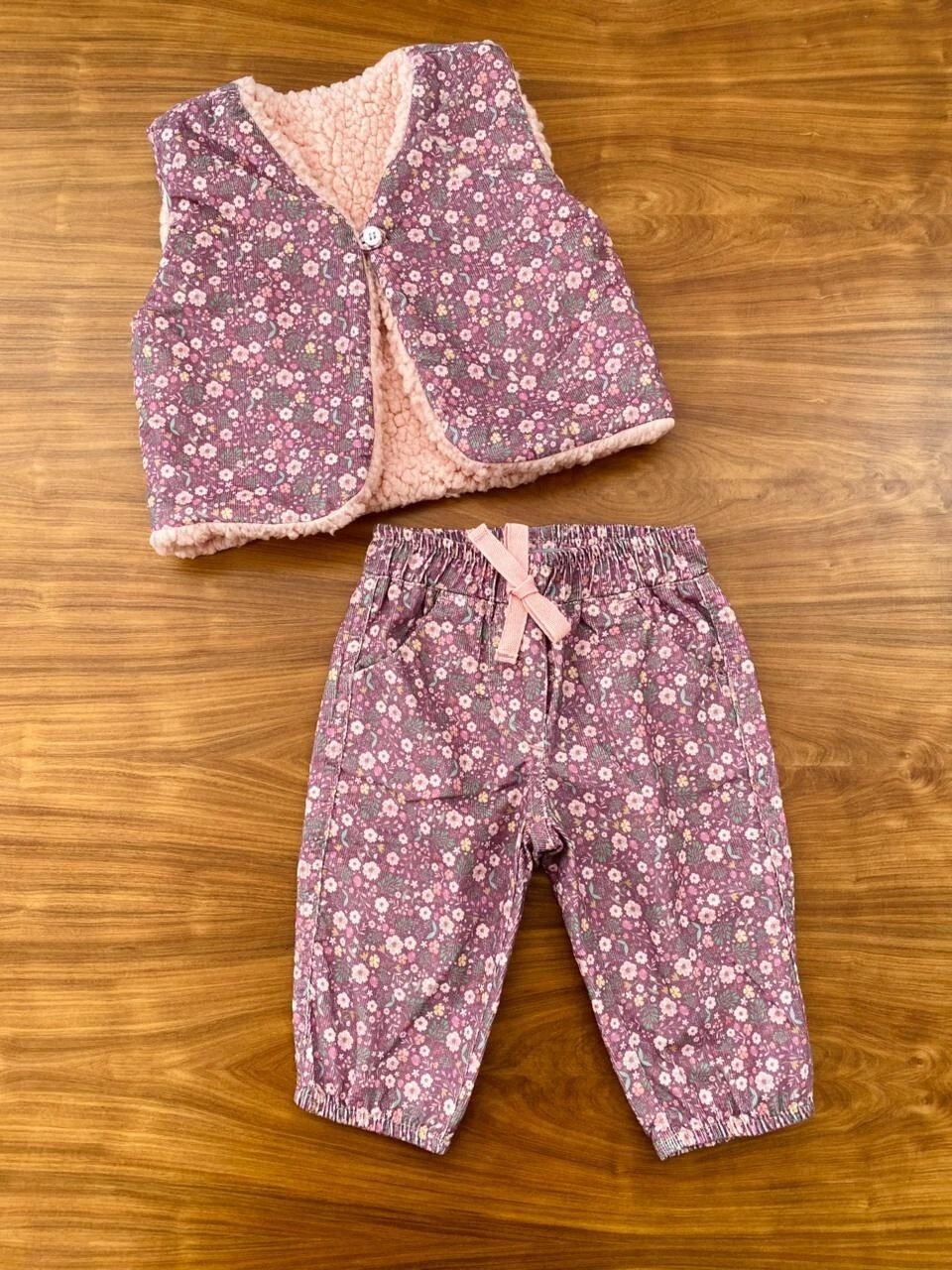 Calça de veludo estampado leve e confortável com cós e barra de elástico. Estampa floral charmosa e delicada e peça é muito macia, perfeita para brincar com liberdade de movimentos