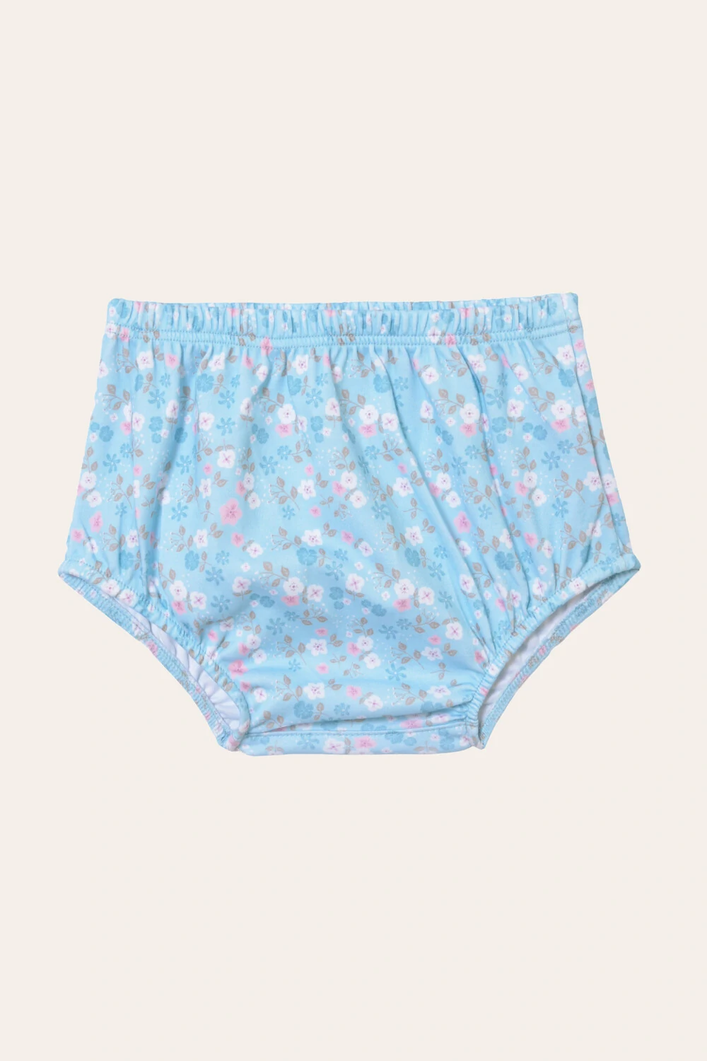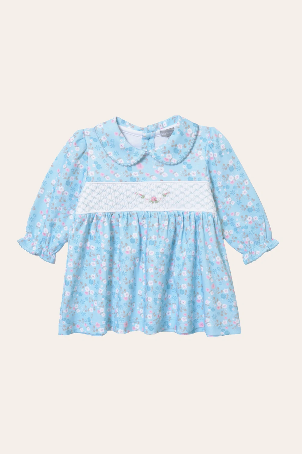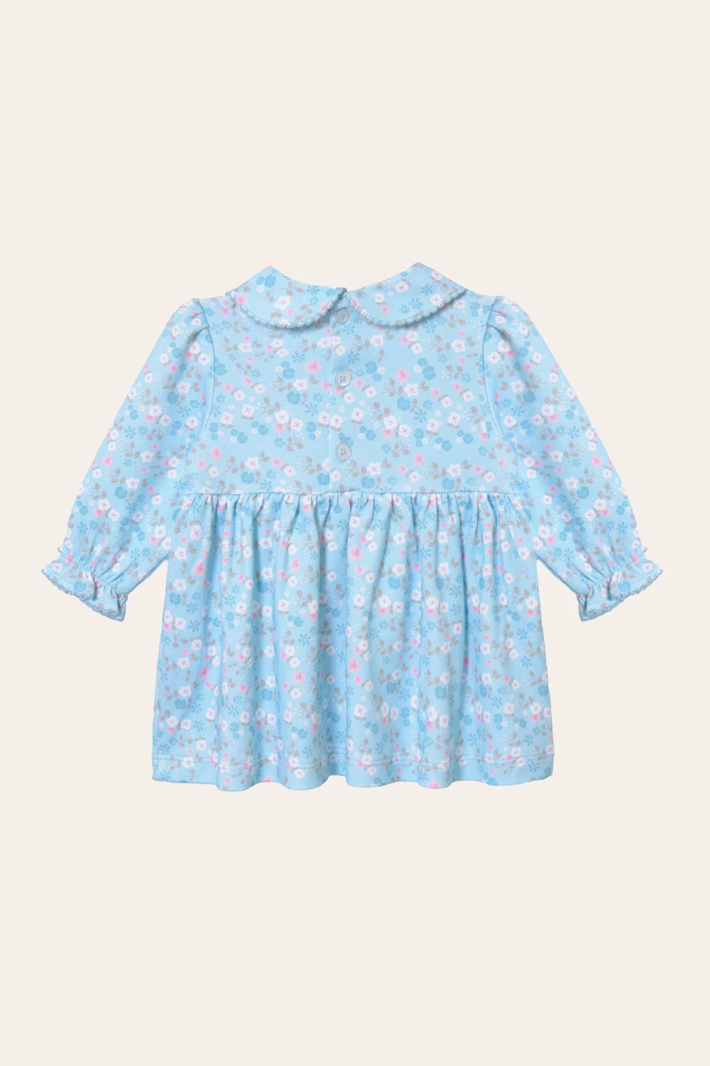Vestido estampado em algodão pima - tecido com toque especial e alta durabilidade - com detalhe bordado casinha de abelha no decote e calcinha combinando. Fica lindo com meias e calças justinhas, pode ser usado como vestido ou batinha.