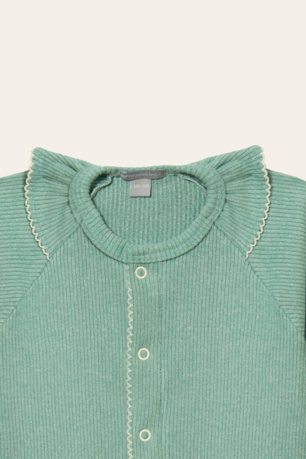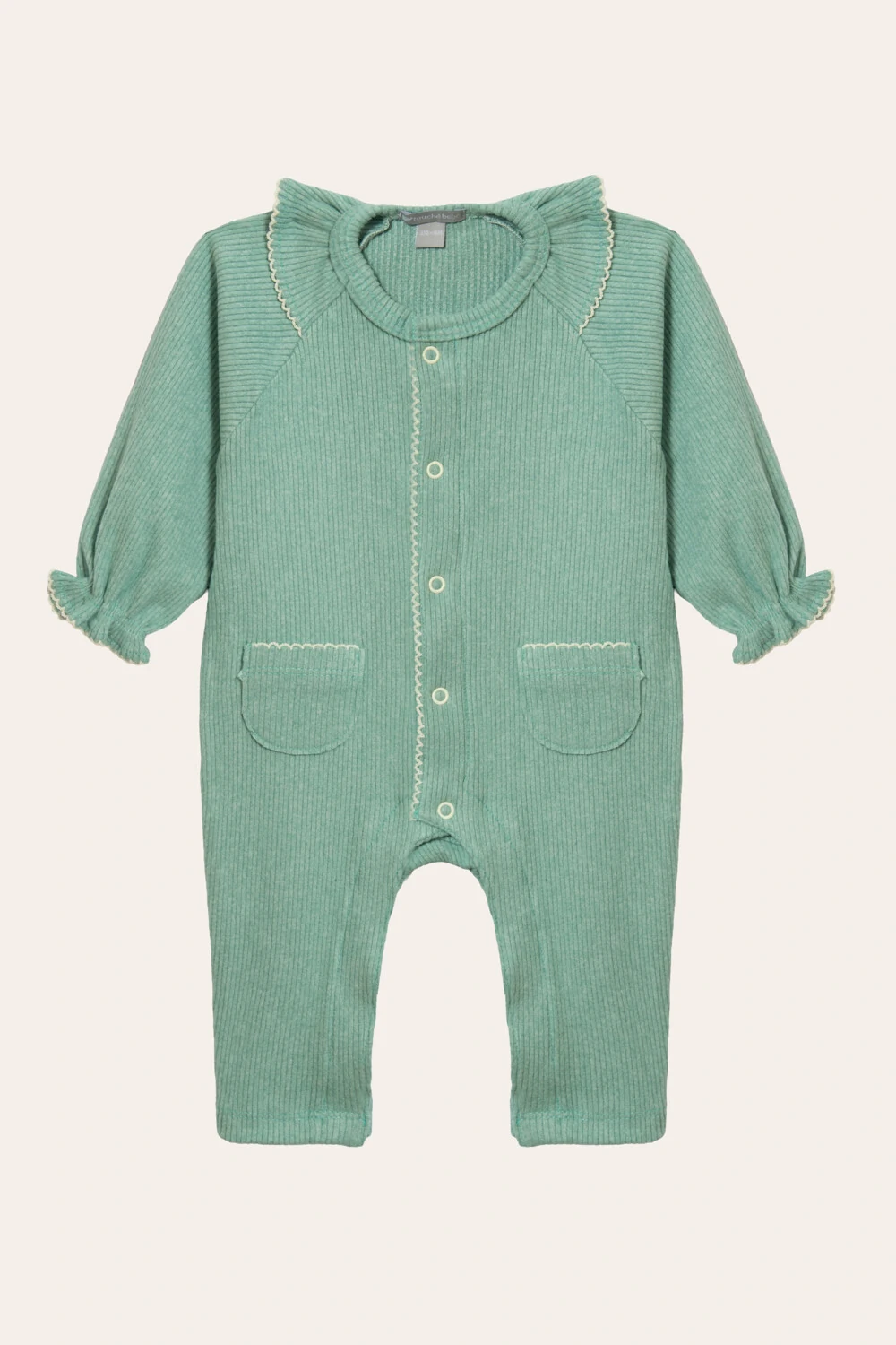 A nossa linha de canelados é um sucesso! Sabe aquelas peças que deixam seu bebê confortável e lindo? Pois é, as nossas peças de tecido canelado são assim. O macacão tem babadinho e aberto na frente - fácil de vestir, cheio de detalhes, lindo! As peças são feitas no nosso Canelado, um mix de fibras de toque fresco e super maleável.