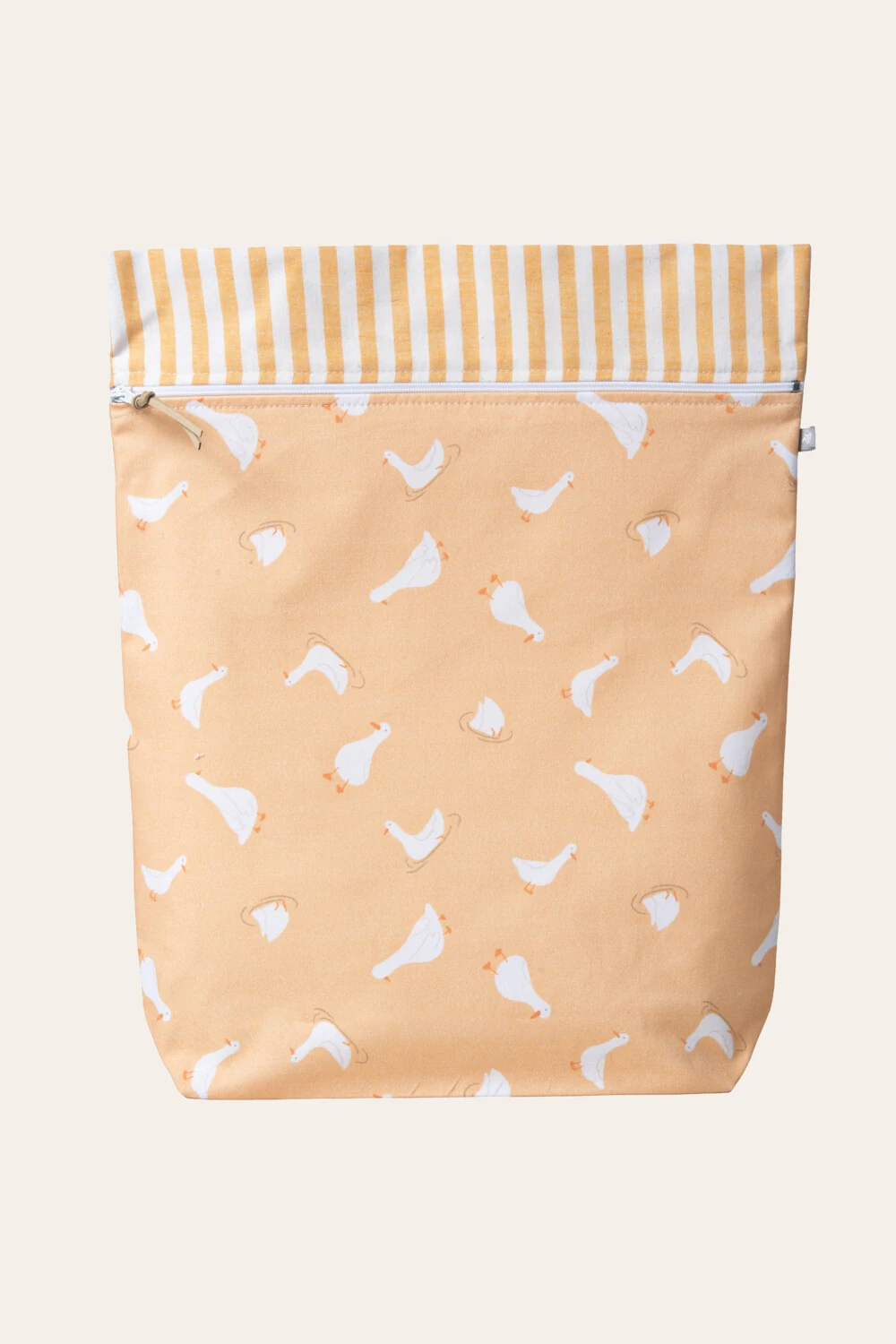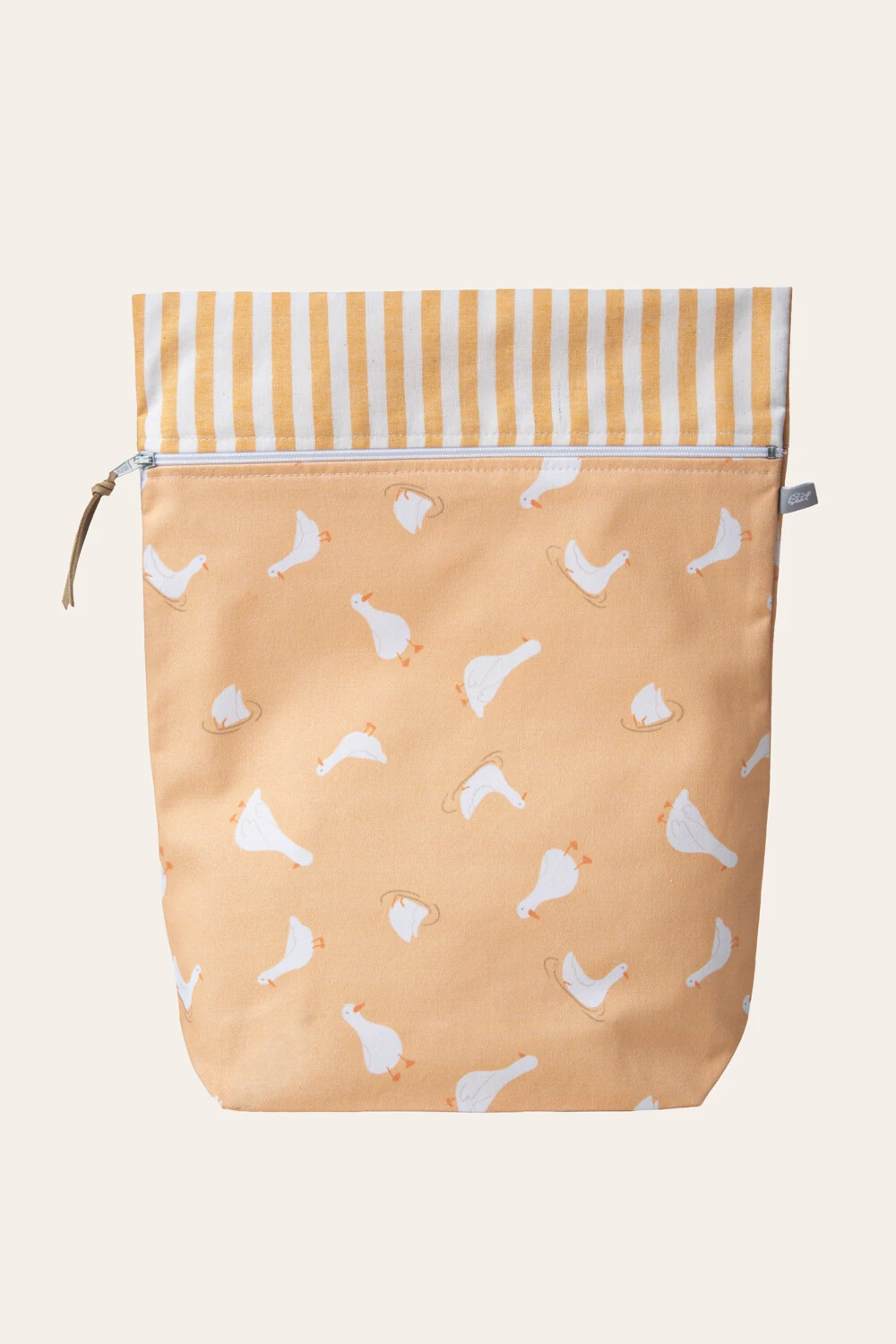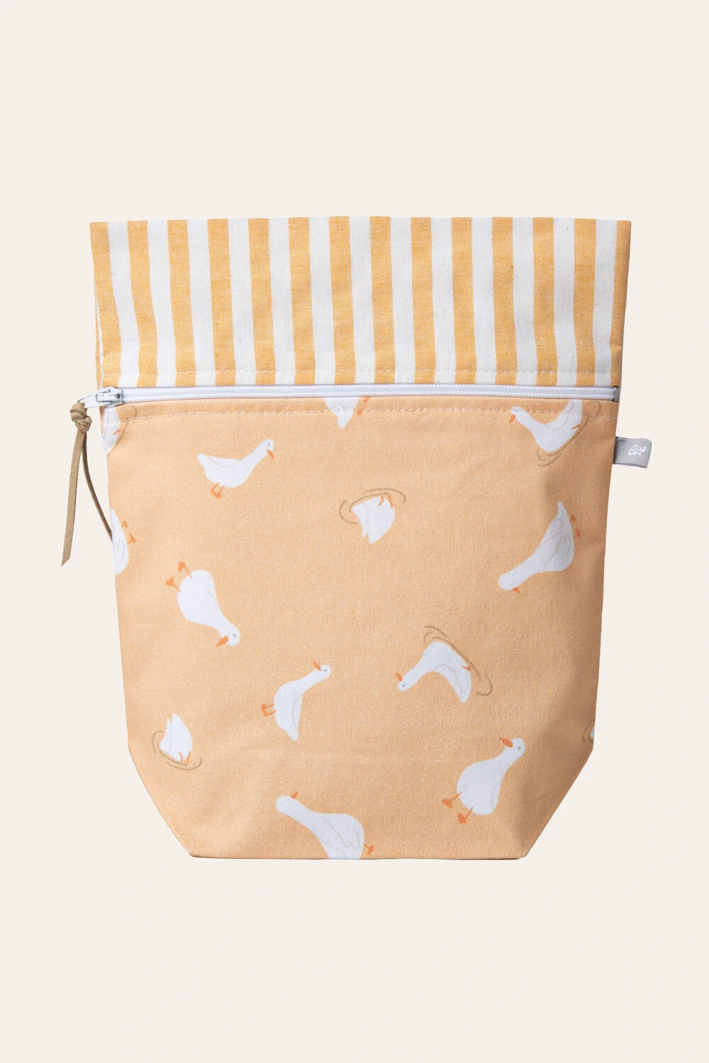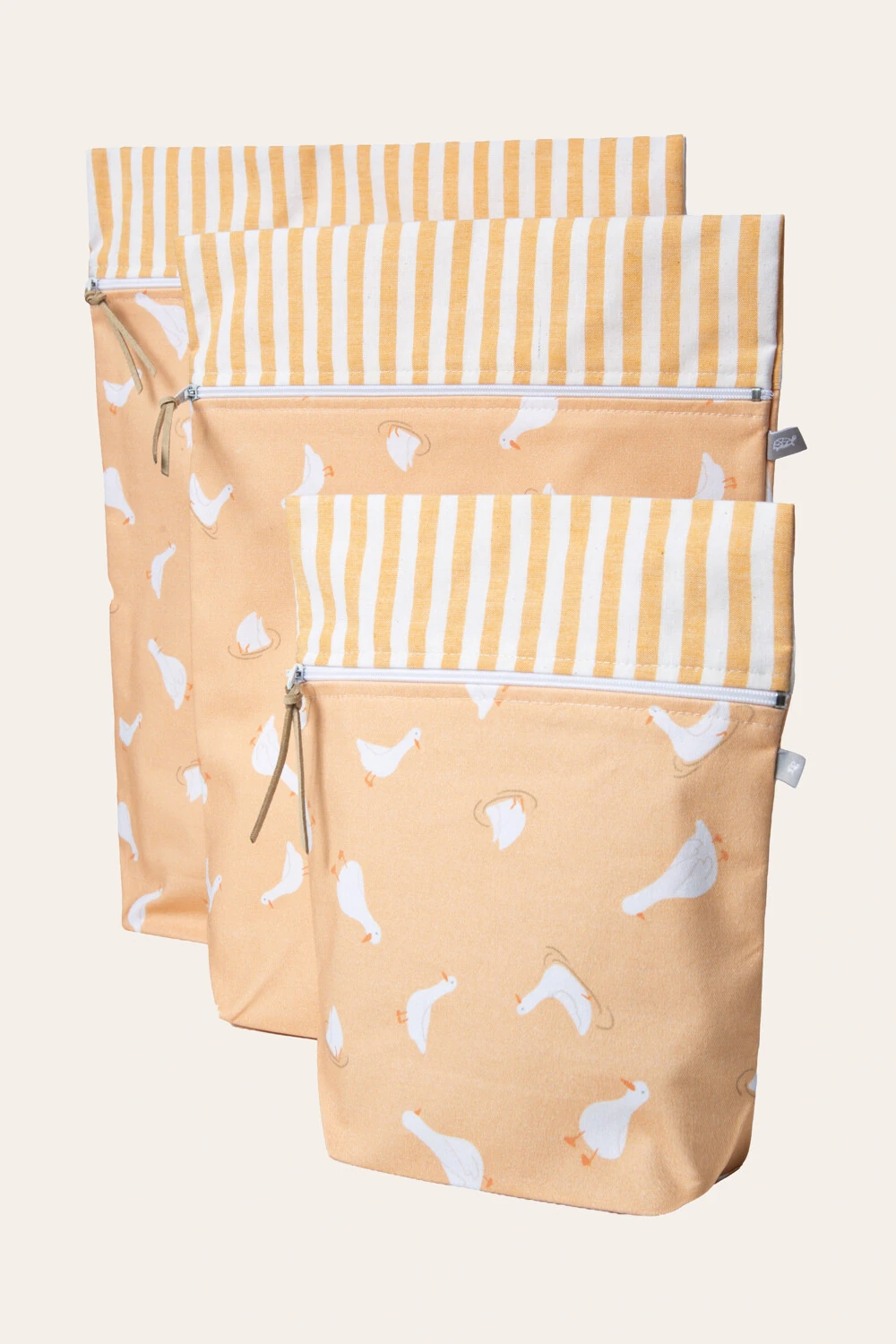 Kit saquinho estampado em sarja, com zíper e interno impermeável, em três tamanhos é perfeito para guardar e organizar as coisas do seu bebê