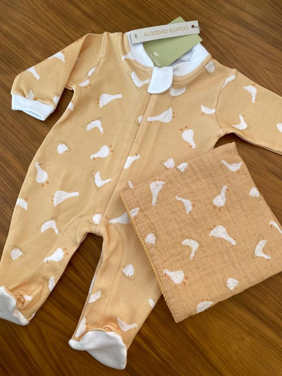 Macacão em algodão egípcio, extremamente macio e delicado para a pele do bebê. Estampa exclusiva de patinhos, com design atemporal e elegante. Possui botões entrepernas que facilitam a troca, garantindo praticidade no dia a dia.